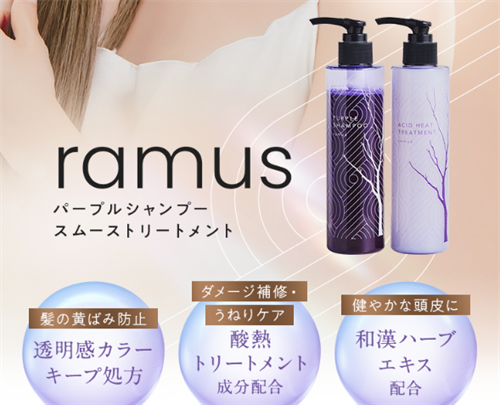 ブリーチ毛の黄ばみやダメージに悩むあなたへ。 ramus(ラムス) パープルシャンプー&トリートメントの口コミを徹底紹介! 色落ちを防ぎながらうねりやパサつきをケア。 悪い口コミも隠さず紹介しています。 実際に使った人の感想を参考に、自分に合うか確認しましょう。 「ブリーチ後の黄ばみが気になる」「カラーがすぐ抜ける」「うねりでスタイリングが決まらない」