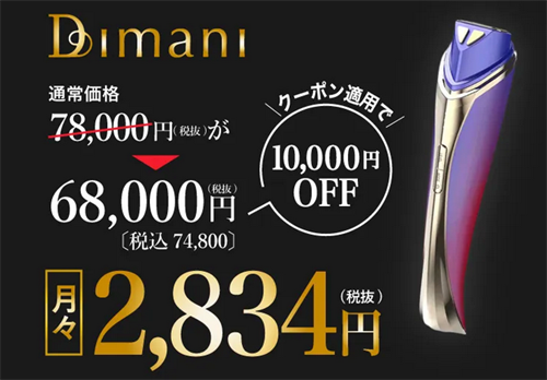 | ディマーニ美顔器 | 78,000円(税抜) | 68,000円(税抜) 74,800円(税込) |