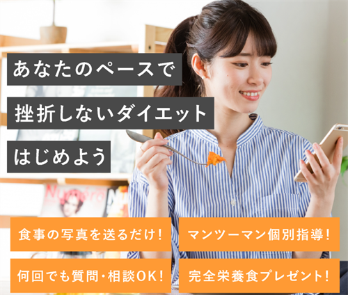 専属アドバイザーがLINEでマンツーマンサポートを行い、毎日の食事写真を送るだけで最適なアドバイスがもらえるため、自己流ダイエットで挫折してきた方にもぴったりです。