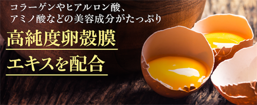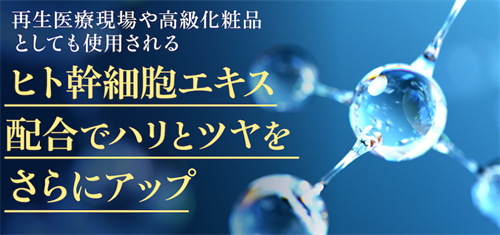ヒト幹細胞エキスや卵殻膜エキスを配合し、ハリや潤いをサポートする成分が贅沢に含まれています。