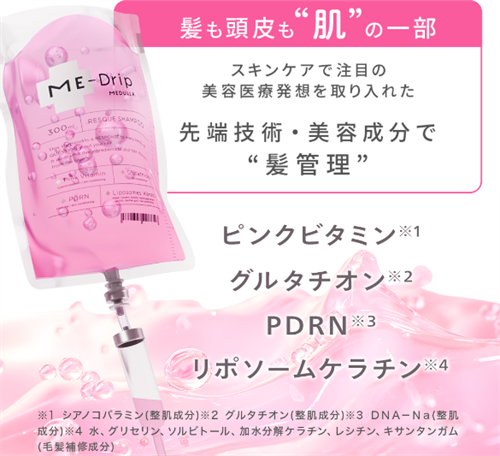 ME-Dripと相性抜群で、2ステップで使えば、髪の内部から補修・保湿力が倍増します。