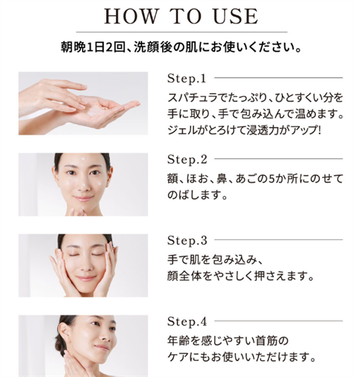 このひと手間により、ジェルがとろけて肌への浸透力がアップします。