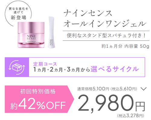 ナインセンスオールインワンジェルをお得に試せる定期便キャンペーンが実施中です。