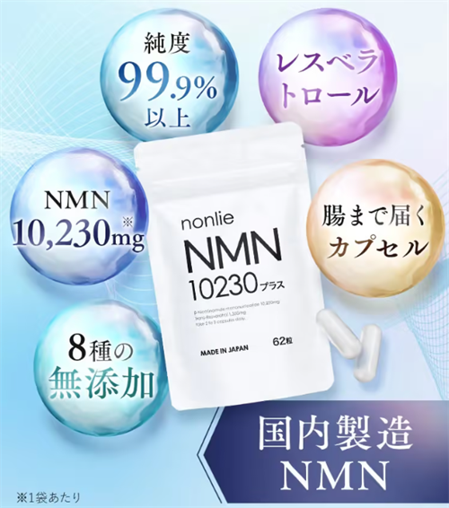 A:nonlie(ノンリ)NMN10230プラスは、高純度のNMNとレスベラトロールを配合しており、エイジングケアやエネルギーレベルの向上、免疫力のサポートが期待できます。