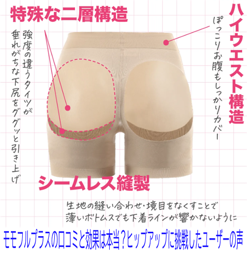 モモフルプラスの口コミや評判を徹底解説! 実際に使用した人のリアルな感想や、ヒップアップ効果、ウエスト引き締め効果を詳しく紹介しています。 モモフルプラスは、ヒップアップ効果とぽっこりお腹をしっかりカバーできる補正下着です。 その最大の特徴は、独自のWOバック構造で、着圧による引き締め効果が非常に高いことです。 多くの口コミで、履くだけでヒップラインが美しく整い、ス