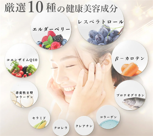 このサプリが多くの人に支持されている理由のひとつが、10種類の厳選された美容・健康成分の配合です。