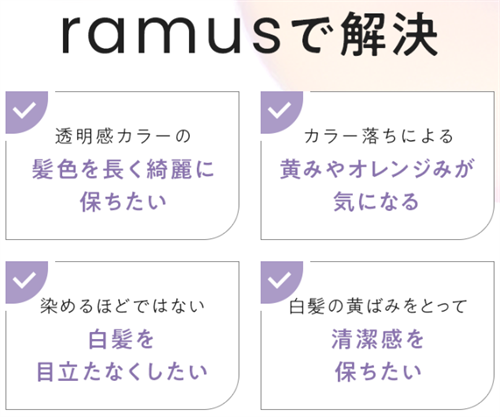 ramus(ラムス) パープルシャンプー&トリートメントは、ただ黄ばみを抑えるだけのムラサキシャンプーではありません。