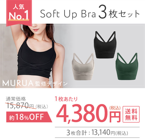 | ソフトアップブラ 3枚セット | 15,870円 | 13,140円 | 1枚あたり4,380円、送料無料 |